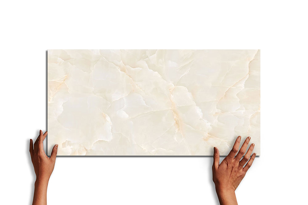Glazed Vitrified Tiles, 600X1200mm, FLOOR, Cream, Glossy, Marble