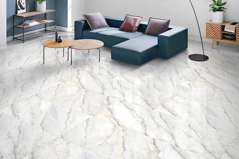 Glazed Vitrified Tiles, 600X600mm, FLOOR, White, Glossy, Marble