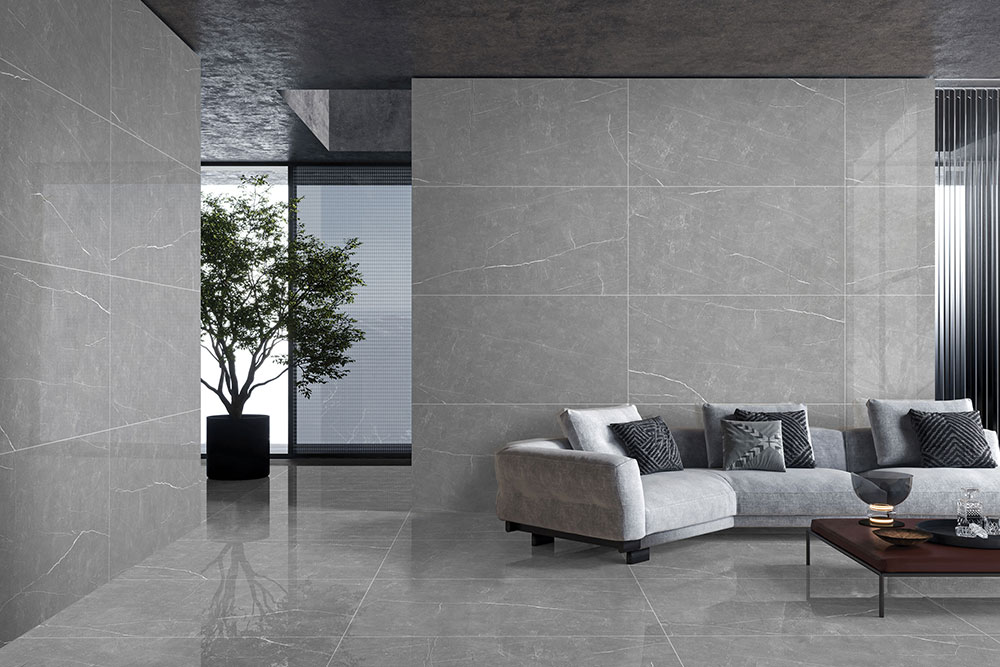 Glazed Vitrified Tiles, 600X1200mm, FLOOR, Grey, Glossy, Stone