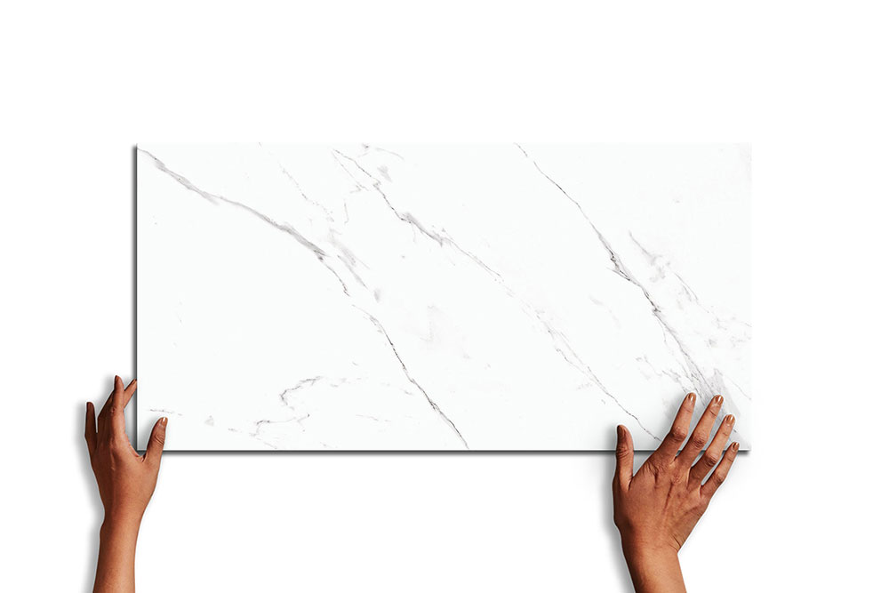 Glazed Vitrified Tiles, 600X1200mm, FLOOR, White, Glossy, Marble